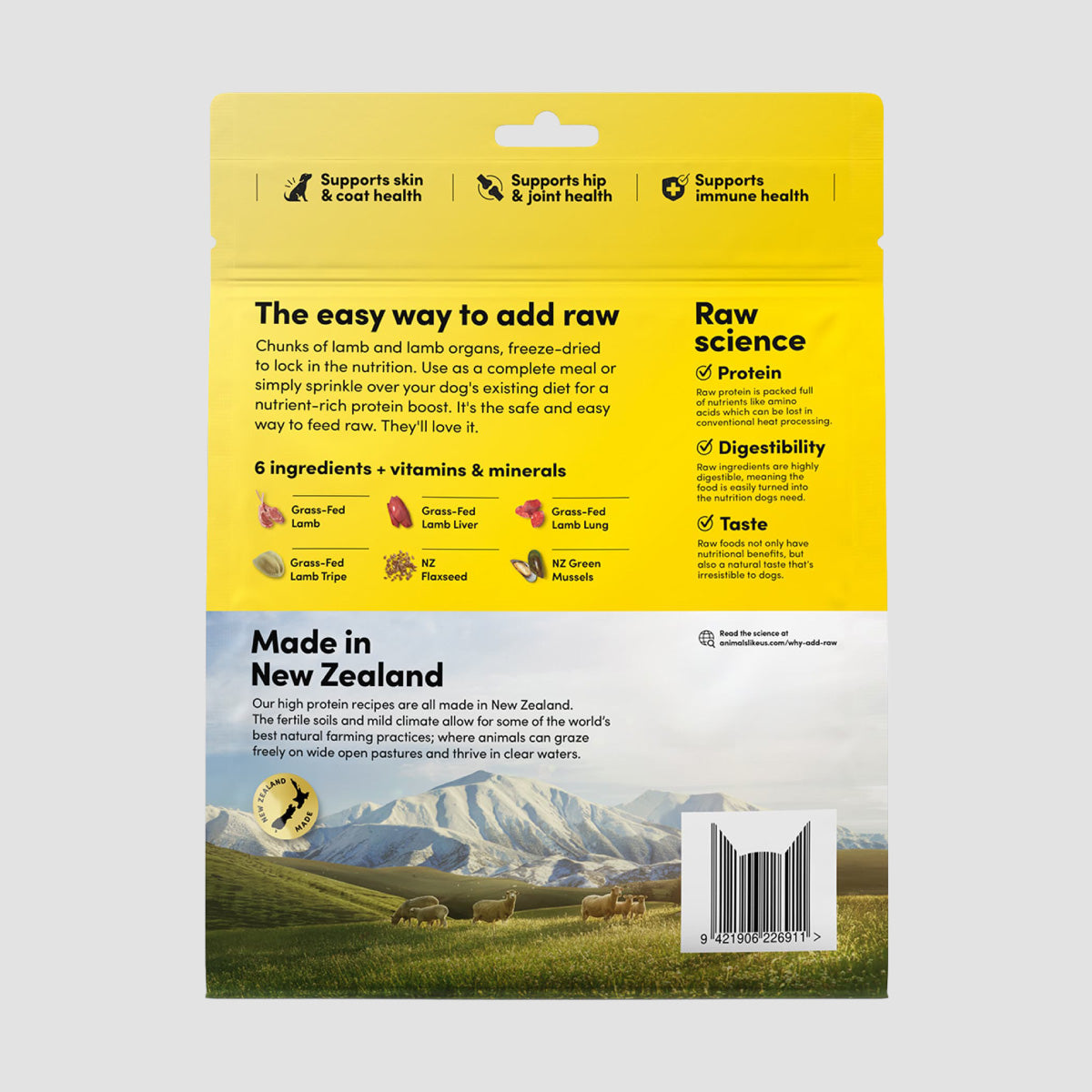 A tasty blend of freeze-dried raw New Zealand lamb and lamb organs with added vitamins and minerals. Serve as a complete and balanced meal, or sprinkle over your dog’s existing diet for a nutrient-rich protein boost.