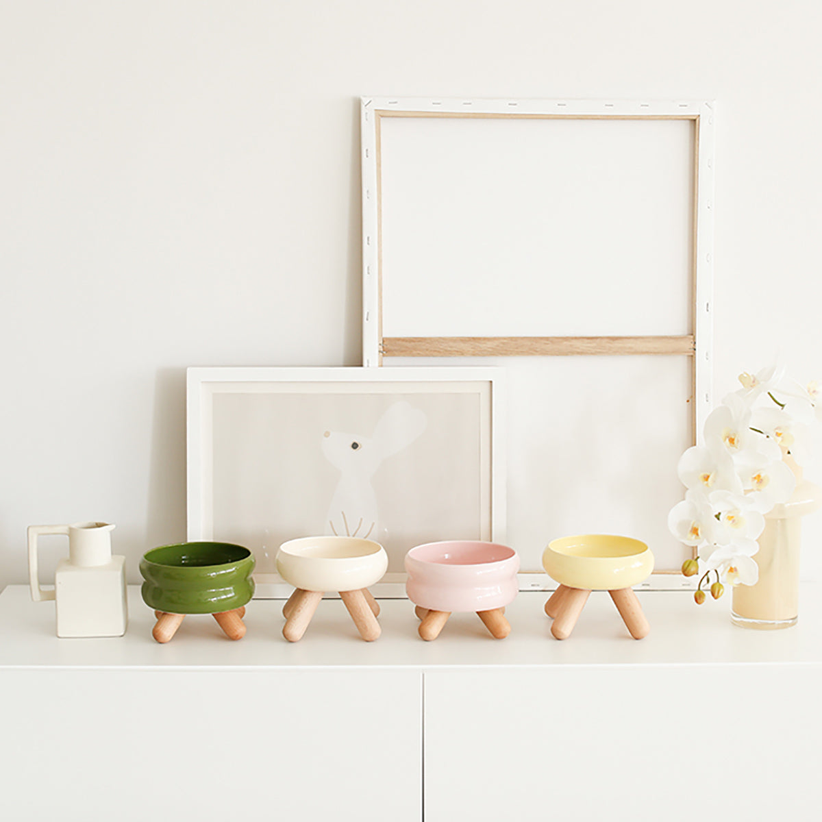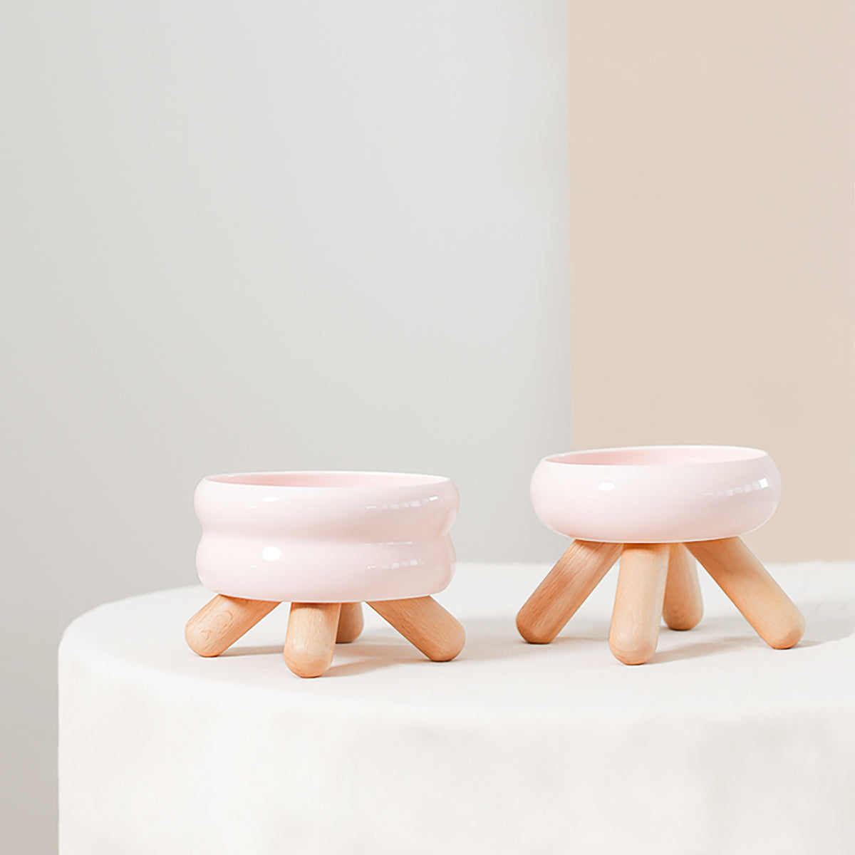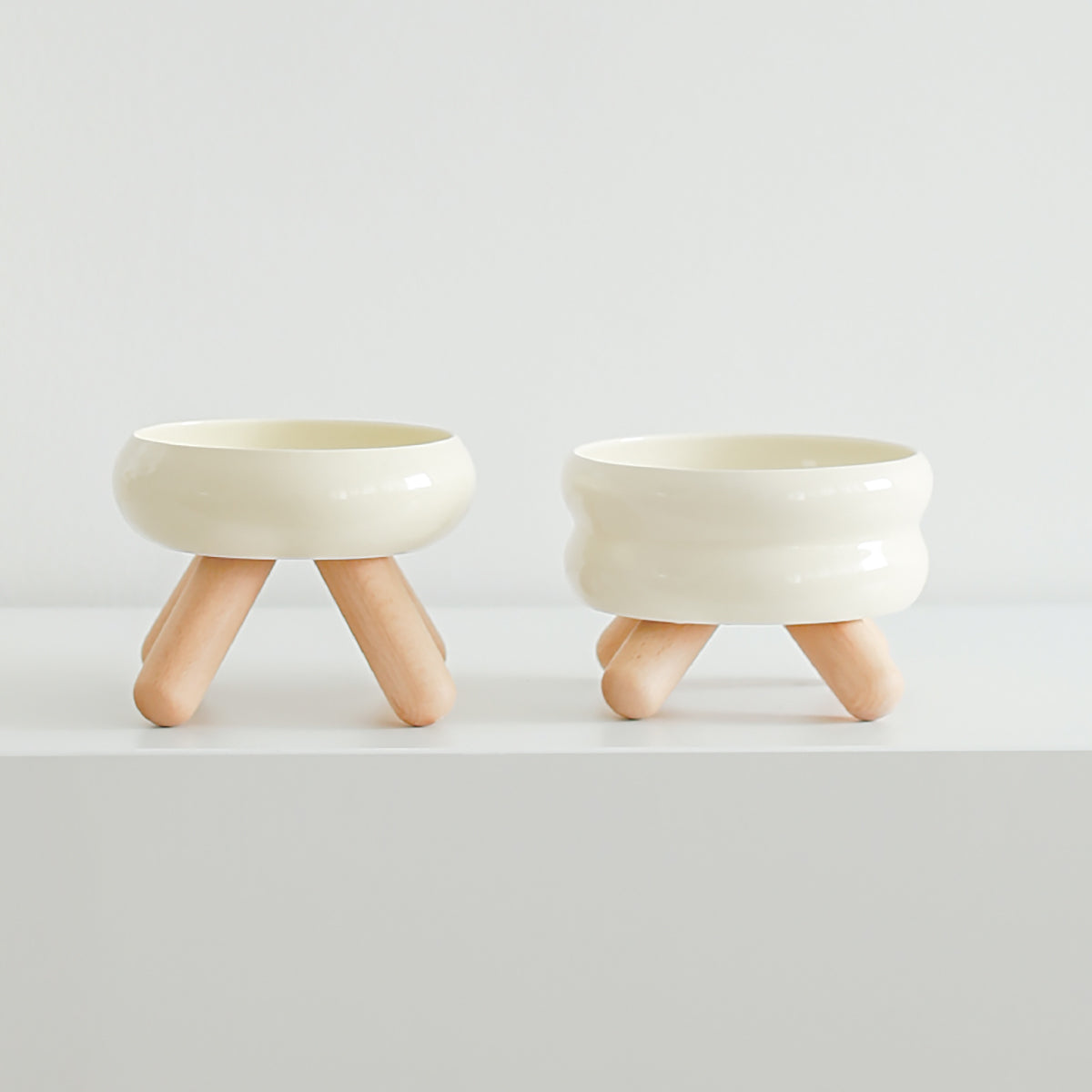 High-quality ceramic bowls with a wide-mouth design that holds enough food for a full day and three days water. The recessed beech-wood base keeps them steady and spill-free, and both bowls detach easily for dishwasher or microwave cleaning.