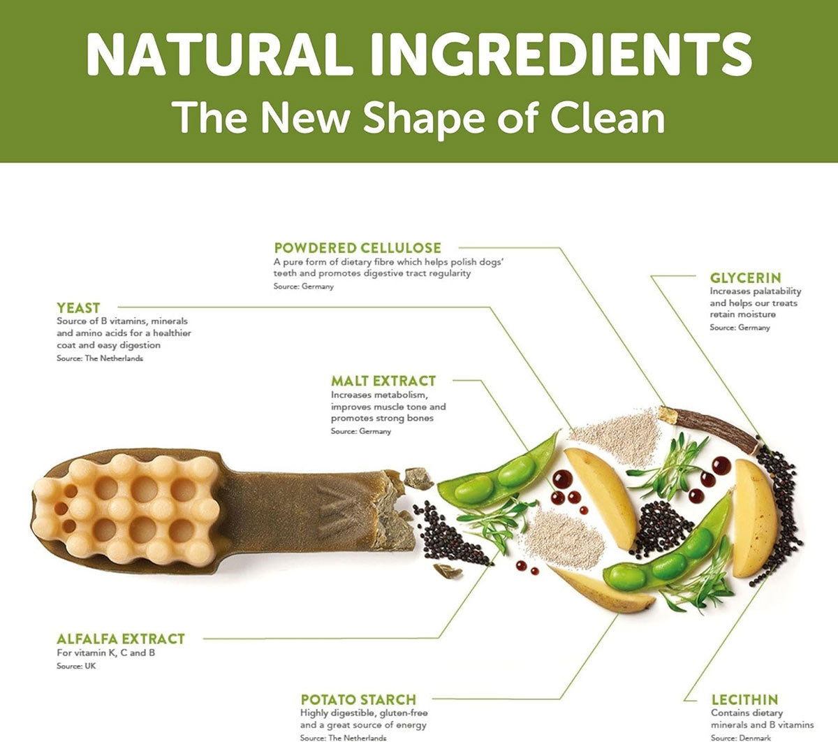 A natural, veggie-based chew that makes dental care easy for your pup. Its clever ridges help reduce plaque and tartar, freshen breath, and turn daily brushing into a safe, enjoyable chewing routine—even for sensitive dogs.
